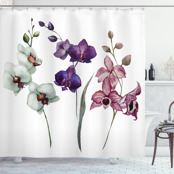 Watercolor Shower Curtain Lovely Orchids Three Colors Blooming Flourishing Environment Theme Fabric Bathroom Set With Hooks 69w X 75l Inches Long Cream Violet Dried Rose By Ambesonne Walmart Com